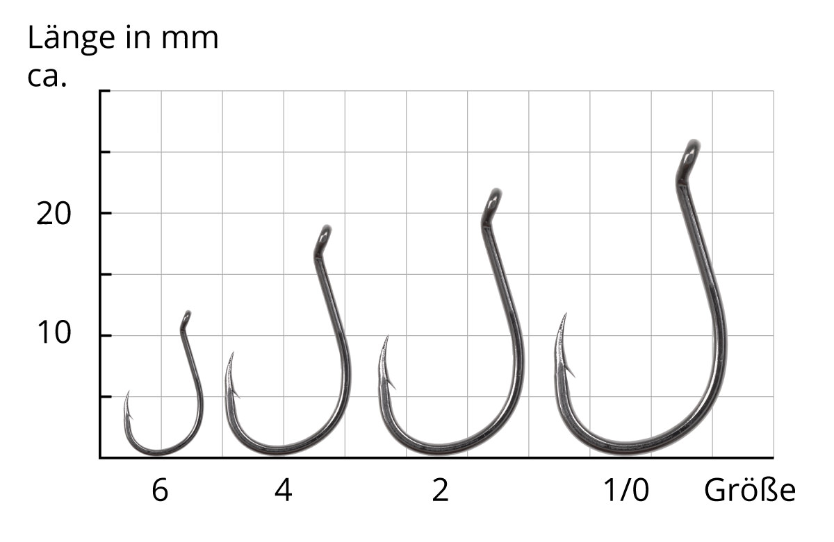 Die Haken sind relativ klein und superscharf, damit sie gut in den harten Räubermäuler fassen können. Gleichzeitig müssen sie die hohen Kräfte standhalten, wenn mal ein dicker Fisch einsteigt.