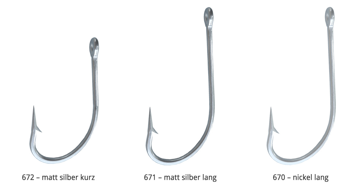 - Hakengrößen 4 – 10 typisch für Salmoniden (Bsp.: Forellen)