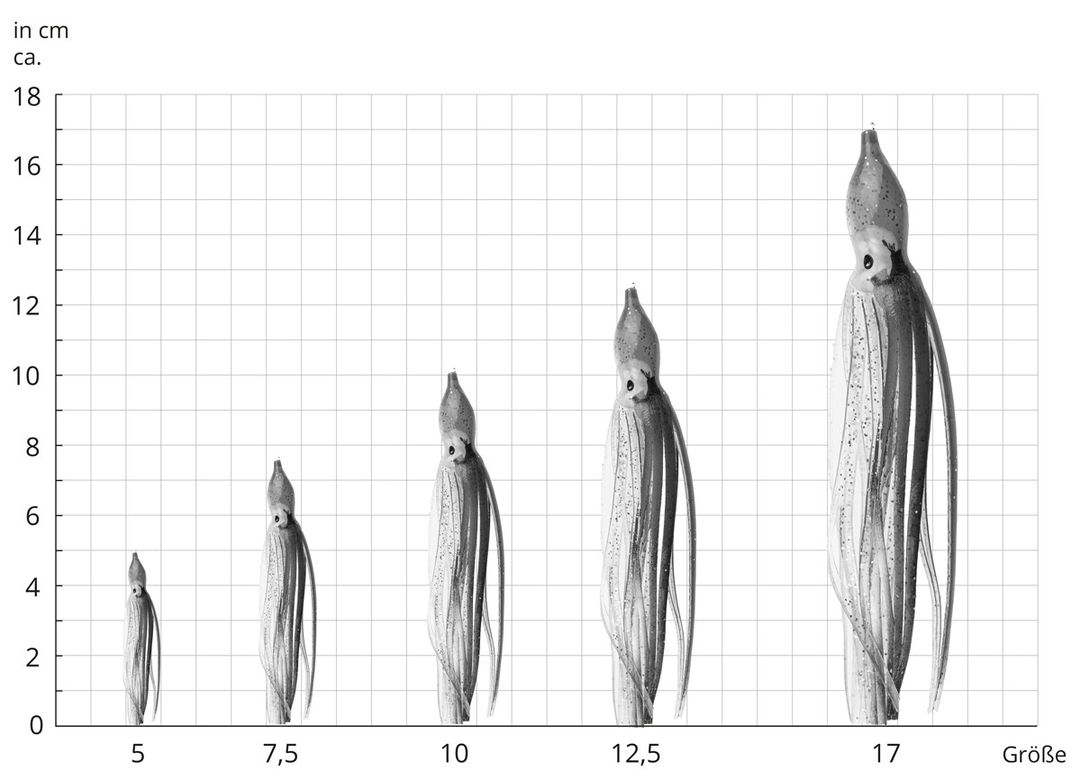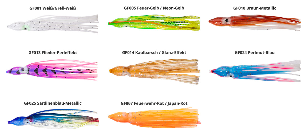 • Der Gummi-Octopus ist als Hauptköder zum Hochseeangeln auf Dorsche, Seelachs, Leng & andere Meeresfische und als vielfach bewährter Beifänger in den Tiefen der Ozeane einsetzbar