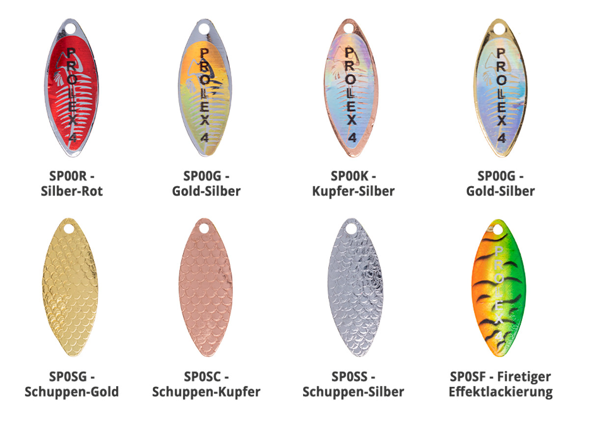Im Vergleich zu preiswerteren Plagiaten sind die Spinner von Prollex als absolut hochwertig einzuschätzen. Die umfangreichen Farbvarianten sind ein weiterer Punkt. Möchten Sie es auffällig - für trübe stehende Gewässer oder dezent - bei Profi-Blinker haben Sie die Wahl.