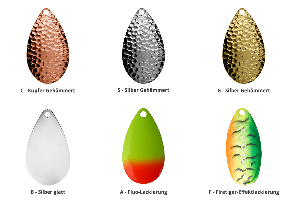 ProfiBlinker Spinnerblatt French Style Tropfen Firetiger-Effektlackierung / Größe 2 / 4er Pack